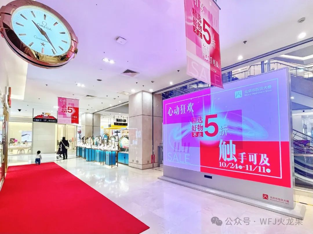 百货大楼聚焦“前抢流量,,, ,,,,,突出优质商品与线下服务体验”目的,,, ,,,,,推出线上线下联动促销、超值爆品合集、饮品新店启幕福利等多重运动,,, ,,,,,抢占市场份额。。。。。。。。店内整体安排为活力满满的粉色主形象,,, ,,,,,店外通过户外3D大屏全天转动播放爆品与重点运动宣传页,,, ,,,,,吸引过往游客眼光。。。。。。。。市肆还充分验展自媒体平台矩阵作用,,, ,,,,,推出“无套路、更省心”爆品购物攻略,,, ,,,,,通过线上发声、线下集客方法,,, ,,,,,提前锁定消艰辛。。。。。。。。