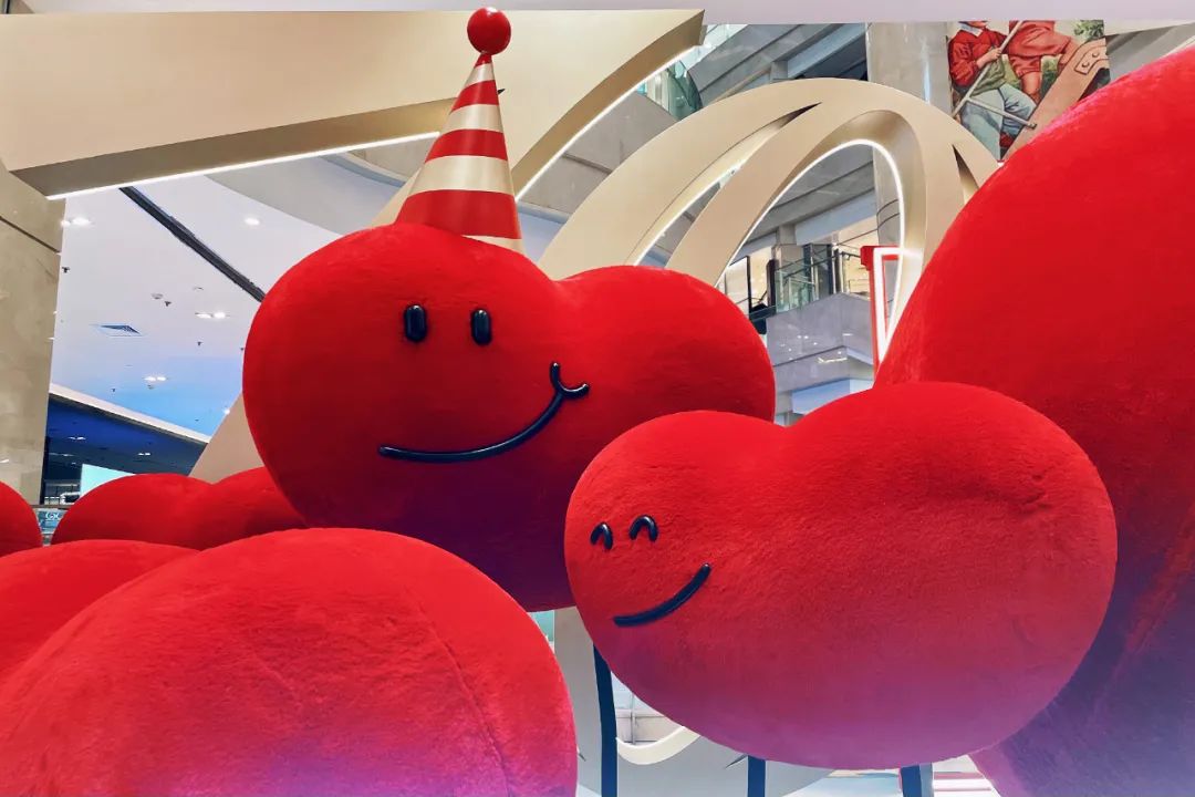 本次美陈装置以“爱心”为焦点元素,,,,,,用酷热的红色、可爱的心情和各异的造型,,,,,,将爱意具象化,,,,,,转达70周年庆的火热气氛。。。。。 。。毛绒质感的“皮肤”让温暖触手可及,,,,,,呼应着百货大楼“心有一团火”的品牌温度。。。。。 。。