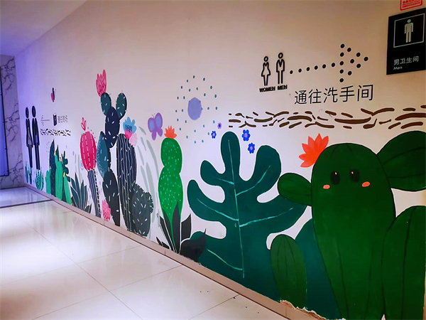 进入8月,,,,,,,在银川店二楼卫生间旁泛起了一面绘画墙。。。。。一副副可爱的彩色画出自阛阓热爱墙绘的小伙伴之手,,,,,,,他们为墙面设计了可爱的立体植物,,,,,,,力争让墙面语言,,,,,,,使阛阓越发充满活力。。。。。