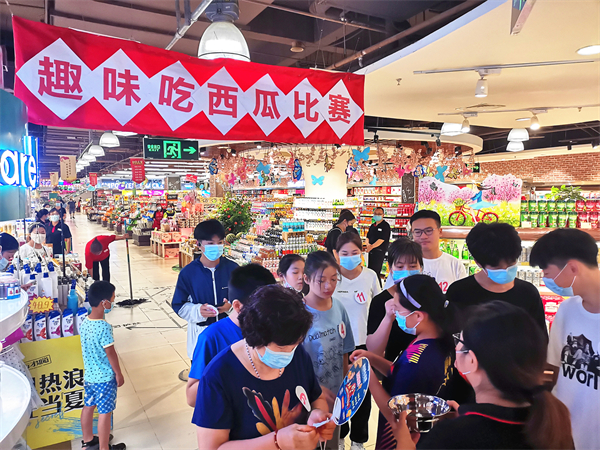 酷爽的夏日,,,,,,,冰爽的西瓜,,,,,,,为给主顾送去夏日的一丝清凉,,,,,,,增添主顾粘性,,,,,,,洛阳店日前在负一层超市水果区,,,,,,,举行了一场充满意见意义的吃西瓜角逐。。。。。
