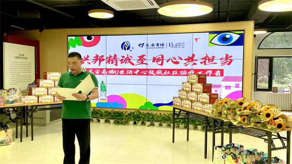 7月4日下昼15:00,,,,,在月坛街道的鼎力大举支持下,,,,,长安阛阓“兴邦精诚至 同心共继续”福利交接仪式在三里河二区党群运动中心正式启动。。。。。。
